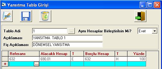 Mta modülüne girilir. Mta Parametrelerinde "Karşı Hesap Açılsın" Parametresine onay verilerek kaydedilir. Yansıtma bölümüne gelip Yansıtma tablosu Girişinden tablo oluşturulur. Tabloda dikkat edilecek unsurlar; 1) Eğer yansıtmak istediğimiz hesaplar Kebir olarak seçilip tek seferde seçilmesi ve Karşılık hesaplarının da tek bir Detay Hesaba aktarılması isteniyorsa; İlgili Detay Hesabı Muhasebe hesap planından açılır. Ve (Örneğin; tüm 770 hesapları sadece 632.01 detay hesabına gitmesi isteniyorsa) aşağıdaki gibi bir tablo hazırlanır. Bu tabloya göre aşağıdaki örnek gibi muhasebe fişi oluşur. 2) Eğer yansıtmak istediğimiz hesaplar Kebir olarak seçilip tek seferde tabloya girilmesi ve Karşılık hesaplarının da bir den fazla Detay Hesaba aktarılması isteniyorsa; (yani tüm 770 hesaplarının detayları ile birlikte 632 hesaba gitmesi isteniyorsa) aşağıdaki gibi bir tablo hazırlanmalı. Bu tabloya göre aşağıdaki örnek gibi muhasebe fişi oluşur. 632.01 632.02 632.03 Bu 3 hesap otomatik hesap planında kendiliğinden açılır ve Hesap isimleri "!! Otomatik Oluştu, Yansıtmadan. !! " olarak hesap planına yerleşir. 3) Yansıtma fişleri yapılırken şu mantık kurulur. Yansıtmak istediğimiz hesaba Referans Hesap denir. Yansıtmada işleminde kullanılacak bu referans hesap, ters bakiye oluşturularak Hesap bakiyesi sıfırlanır. Eğer Referans Hesap Borç Bakiye veriyorsa : Mali tablo Hazırlama ekranında Alacaklı kısmına Referans Hesap yazılır, Borçlu tarafa da yansıtma yapılacak Karşı hesap yazılır. Eğer Referans Hesap Alacak Bakiye veriyorsa : Mali tablo Hazırlama ekranında Borçlu kısmına Referans Hesap yazılır, Alacaklı tarafa da yansıtma yapılacak Karşı hesap yazılır.